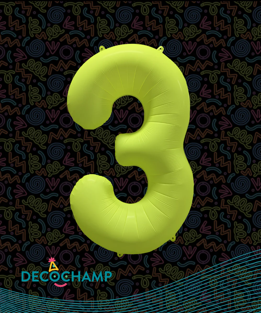 DECO NUMBER 3 NEON YELLOW 34" BY DECOCHAMP