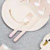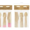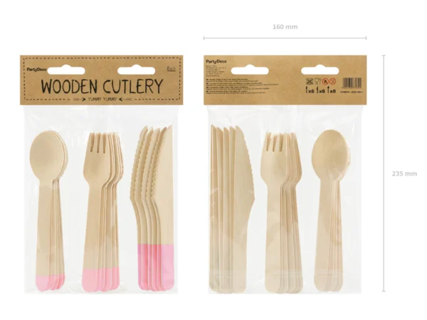 WOODEN CUTLERY LIGHT PINK (16CM - 1PKT/18PC). SET CONTAINS 6 SPOONS, 6 FORKS & 6 KNIVES.